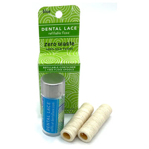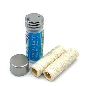 Dental Lace's 100% silk floss is biodegradable, toxin-free, refillable, and packaged inside a compact and stylish glass container with a stainless steel lid. Soothing mint oil and plant-based vegan wax provide excellent cleaning power for a fresher and brighter smile.