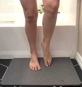 The diatomaceous mat is an eco-friendly, biodegradable, and anti-slip solution ideal for moist environments. Made from natural diatomaceous clay, a renewable resource from fossilized algae, it absorbs up to 150% of its weight in water and dries within seconds, helping to inhibit microbial growth. This versatile mat works well not only as a shower mat but also as a dish rack, pet bowl mat, or plant base. Each set includes the mat, a soap dish, rubber pads, and sandpaper.