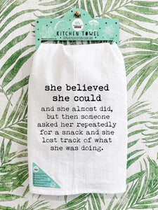 Brighten up your home with this cute and funny flour-sack dish towel!
