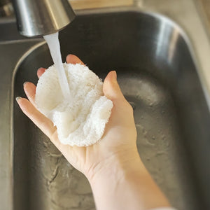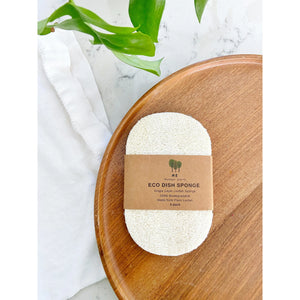 Made 100% from loofah plants, vegan, 100% compostable, they come in a 3-pack. Expands in size and softens in water to work like a typical dish sponge, but without the plastic waste.