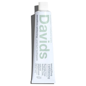 Davids Natural Toothpaste contains natural ingredients to safely and effectively fight to remove plaque, whiten teeth, and freshen breath.