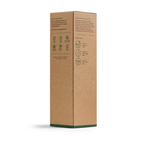 Packaging: Aluminium Bottle^, Aluminium Lid^, Paper Label*, Paper Box^*. ^Widely Recyclable, *Compostable.