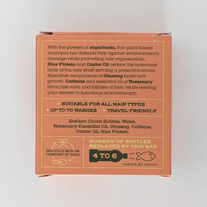 This Protecting and Regenerating Shampoo Bar offers a unique formulation for thinning hair. The bar harnesses the power of rice protein, castor oil, ginseng, caffeine, and rosemary essential oil. These potent ingredients stimulate hair follicles and enhance scalp blood circulation, promoting hair protection and regeneration. Ginseng is known for its bioactive components of ginsenosides, which can help promote healthy hair growth + added Caffeine and Rosemary Essential Oil stimulants roots and follicles for added thickness and body.