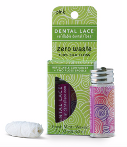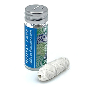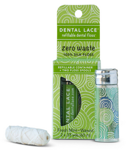 Includes one Dental Lace container with one 33 yard spool of biodegradable mulberry silk floss inside the container and one refill spool for a total of 66 yards of floss.