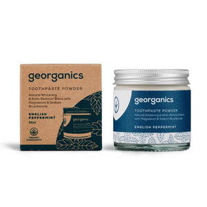 Georganics' naturally whitening toothpaste powder works by absorbing and polishing away stains and plaque that naturally form on our teeth. It's a completely safe and fast-effective formula made without the use of any chemicals like peroxides, fluoride compounds or synthetic flavorings. We blend together high quality mineral powders, like calcium carbonate and sodium bicarbonate, all of which are food grade so completely safe if accidentally ingested.