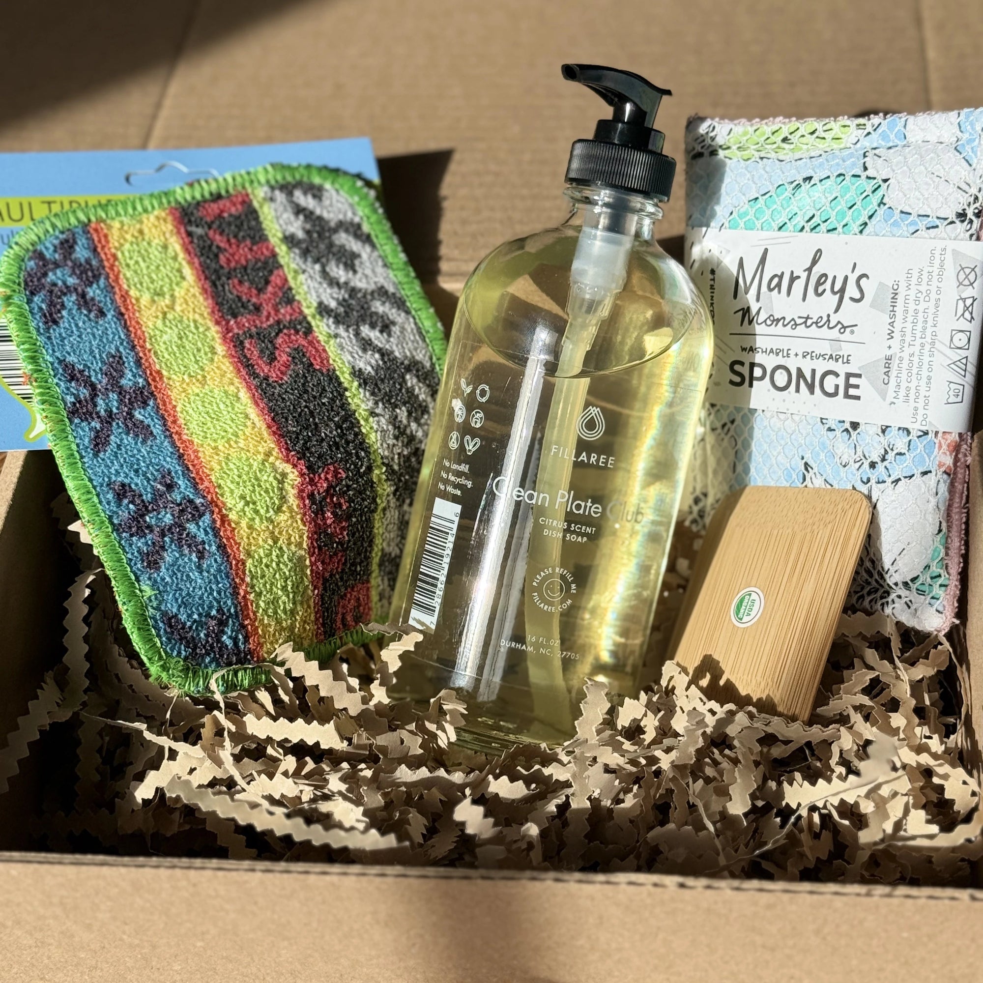Transform your dish washing routine with this comprehensive zero-waste dish washing set! This thoughtfully curated bundle includes four essential dish washing tools from trusted sustainable brands, giving you everything you need for sparkling clean dishes without the plastic waste.